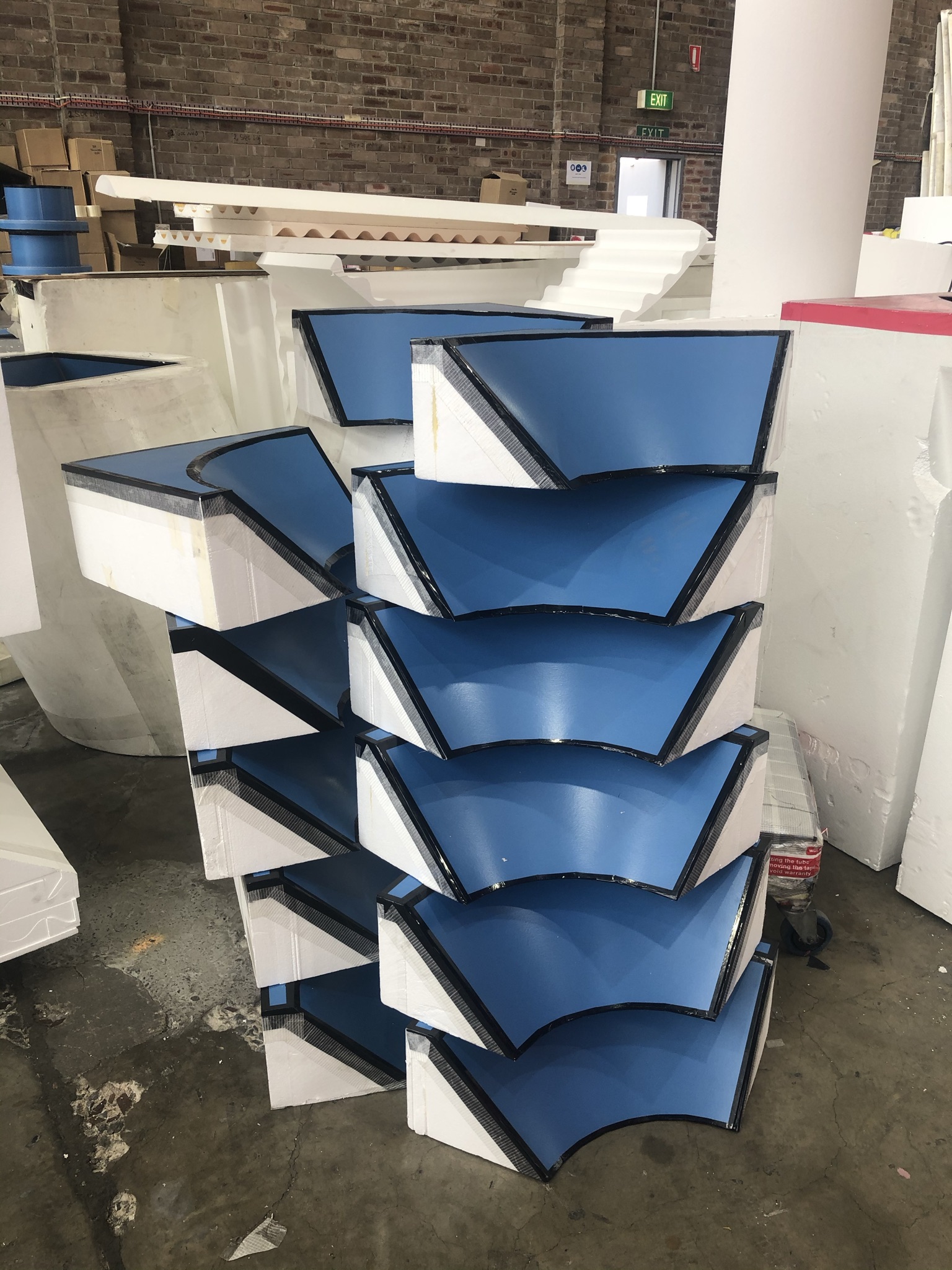 Plinth mould designs of various shapes such as the tapered oval shape of different dimensions on both ends, customized angular shape, tapered chamfered edge, diamond shape, taped profiles, or of any customized design. We can incorporate special features such a channels, grove, and rebates on the concrete surface. It can be achieved by using our box system or bespoke pink tube solution. We use the blue liner or special Epoxi liner for a smooth finish, and there is no limitation on size. Depending on the geometry we can design a top fitting system or a sandwich system that allows you to install the system from the sides of the reo. Our moulds are multiple reusables but should come to our factory after each use for relining, cleaning and transformation if required.